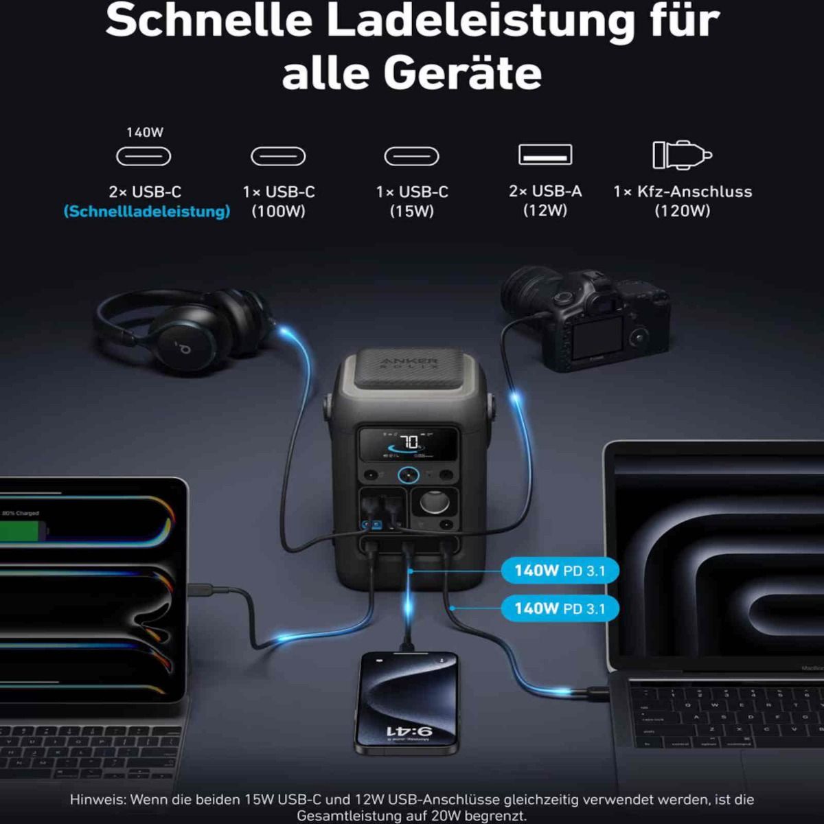 - Die Kombination aus kompakter Bauform, direkter DC-Versorgung und integrierter Solarladung macht die Anker SOLIX C300X DC-PS60 zu einer verlässlichen Lösung für mobile Arbeit, Reisen, Technik-Setups und DC-basierte Backup-Anwendungen, bei denen Energie verfügbar sein soll, ohne den Ablauf zu bestimmen.