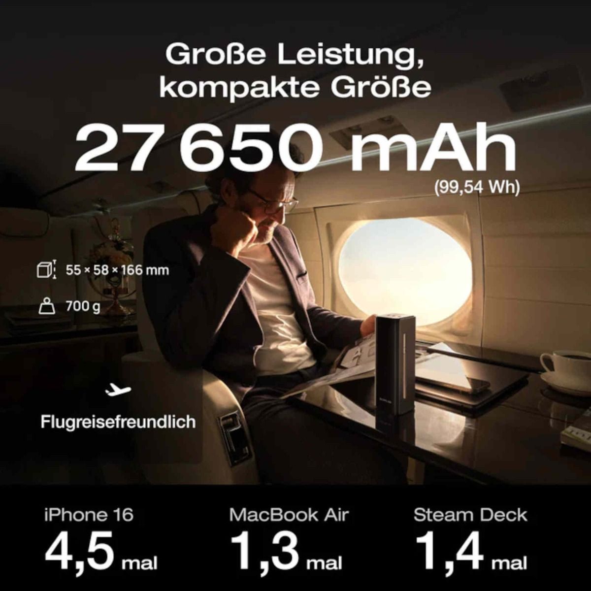 - Kapazität: 27 650 mAh (99,54 Wh)