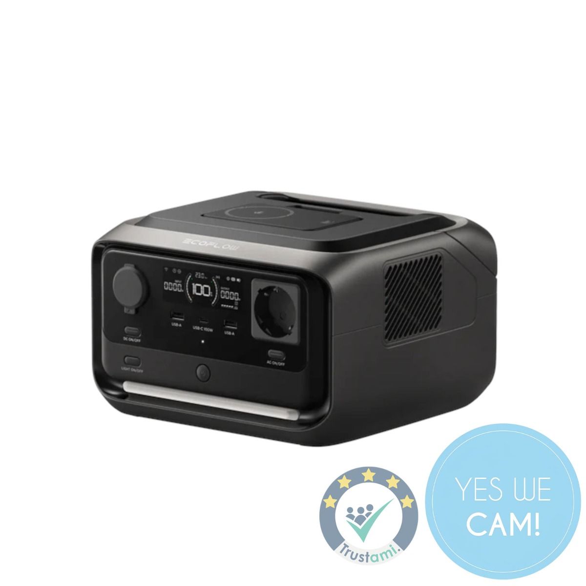 - Eingänge: AC‑Netzladegerät, Solar (z. B. XT60 mit ca. 220 W), Ladekabel für Autosteckdose.