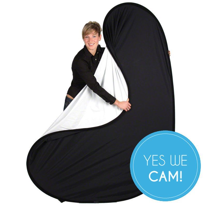 Der Falthintergrund ist der ideale Helfer für Fotografien sowohl im Studio, als auch im Freien. Er kann im Hoch- und Querformat verwendet werden. Die weiße Seite des Reflektors hilft Ihnen z.B. Schatten aufzuhellen, die schwarze Seite hält Licht einer zu starken Lichtquelle zurück. Die Ausleuchtungen Ihres Motivs können sie somit selbst sehr gut regulieren. Der Federspannrahmen sorgt dabei für die nötige Stabilität, er springt selbstständig auf und ist im Handumdrehen wieder zusammengefaltet und in der mitgelieferten Transporttasche verstaut.