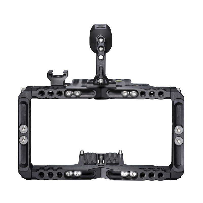 Die zahlreichen Verstellmöglichkeiten des Universal Frame ermöglichen es Ihnen, Ihr Cage ganz nach Ihren Einsatzgebieten und den daraus resultierenden ergonomischen Gesichtspunkten anzupassen. Alle wichtigen Zugangspunkte wie Speicherkartenslot, Batteriefach oder Anschlussbuchse bleiben frei zugänglich. Der im Lieferumfang enthaltene Handgriff Aptaris Universal Handle Large, der über zusätzliche 1/4" und 3/8" Bohrungen verfügt, kann über eine Minirail wahlweise an der Top Plate oder an den Seitenteilen befestigt werden. Im Aptaris Sortiment finden Sie eine Vielzahl an Zubehör, um Ihr Cage zu einem vollwertigen und professionellen Rig auszubauen.