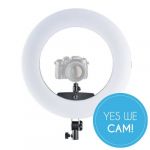 Die Medow 960 Pro Bi Color ist eine große Ringleuchte mit einem Außendurchmesser von 45 cm und 30 cm Innendurchmesser. Dies erlaubt den Einsatz auch bei größeren Objekten und erleichtert es, Aufnahmegeräte wie Kameras oder Smartphones im Inneren der Ringleuchte zu platzieren. So kann einfach Freihand durch die Ringöffnung fotografiert oder aufgenommen werden oder sie befestigen Ihr Equipment auf den mitgelieferten Halterungen.