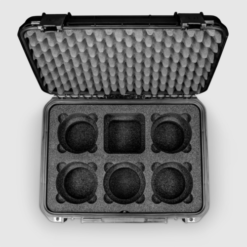 Das im Koffer fest fixierte Inlay ist millimetergenau für die XEEN CF Cine Objektive angefertigt worden. Es nimmt das komplette Set der Cine-Objektive auf, das aus den Brennweiten 16 mm, 24 mm, 35 mm, 50 mm und 85 mm besteht. Ein sechstes Fach steht für weiteres Zubehör zur Verfügung, zum Beispiel für Reinigungsutensilien, Akkus, Ladegerät, Kabel oder ähnliches. Der Koffer hat die Außenmaße von 50,5 cm x 40 cm x 20 cm und wiegt leer 3,97 kg.