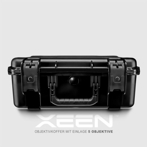 - Dazu ein extrem stabiler Koffer mit Druckausgleich und exakt auf XEEN CF Objektive angepasster Hartschaumeinlage, absperrbar mit 2 Vorhängeschlössern, wasser- und staubdicht, bruchsicher, schwimmfähig
