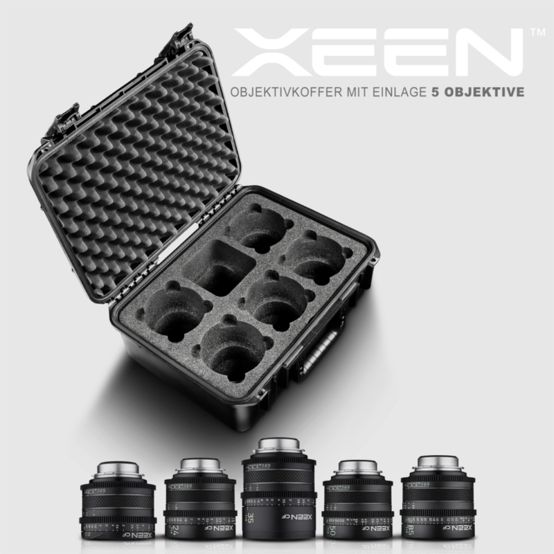 - Set aus allen fünf XEEN CF Cinema 16mm, 24mm, 35mm, 50mm und 85mm Cine-Objektiven inkl. Transportkoffer